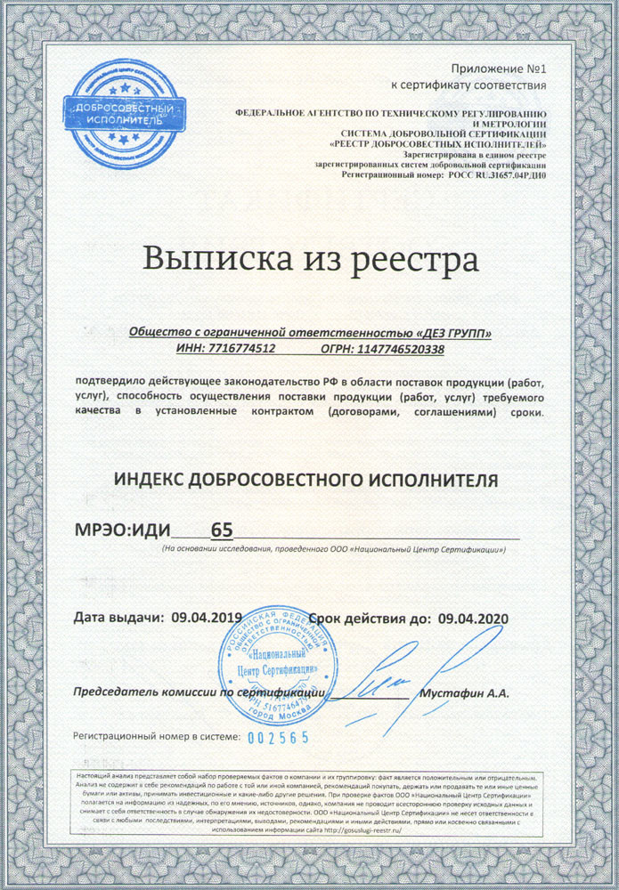 Отправляя свою заявку в Общество с ограниченной ответственностью «ДЕЗ ГРУПП» (ООО «ДЕЗ ГРУПП») я подтверждаю, что в соответствии с п. 9 Федерального закона от 27.07.2006г. № 152-ФЗ «О персональных данных», действую свободно, своей волей и в своем интересе. Настоящим даю согласие ООО «ДЕЗ ГРУПП» (ИНН 7716774512), находящемуся по адресу: 129344, г. Москва, ул. Верхоянская, д.18, корп.2 на обработку с использованием средств автоматизации или без использования таких средств моих персональных данных включая без ограничения сбор, запись, систематизацию, накопление, хранение, уточнение (обновление, изменение), извлечение, использование, передачу (распространение, предоставление, доступ), обезличивание, блокирование, удаление, уничтожение персональных данных, с целью получения консультации по услугам ООО «ДЕЗ ГРУПП».