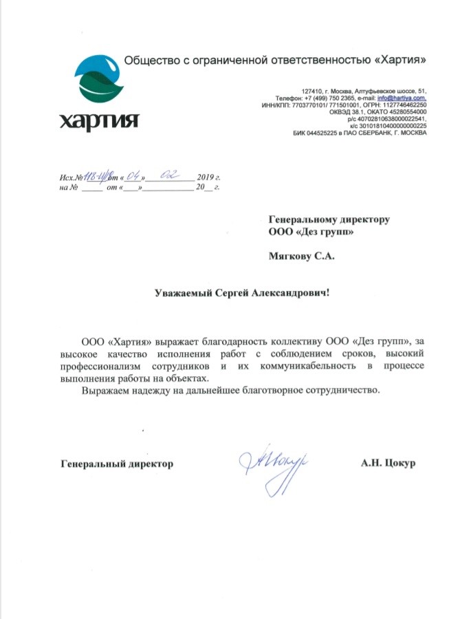 Данное согласие может быть отозвано путем подачи в ООО «ДЕЗ ГРУПП» письменного заявления об отзыве согласия на адрес электронной почты: info@dezoff.ru
