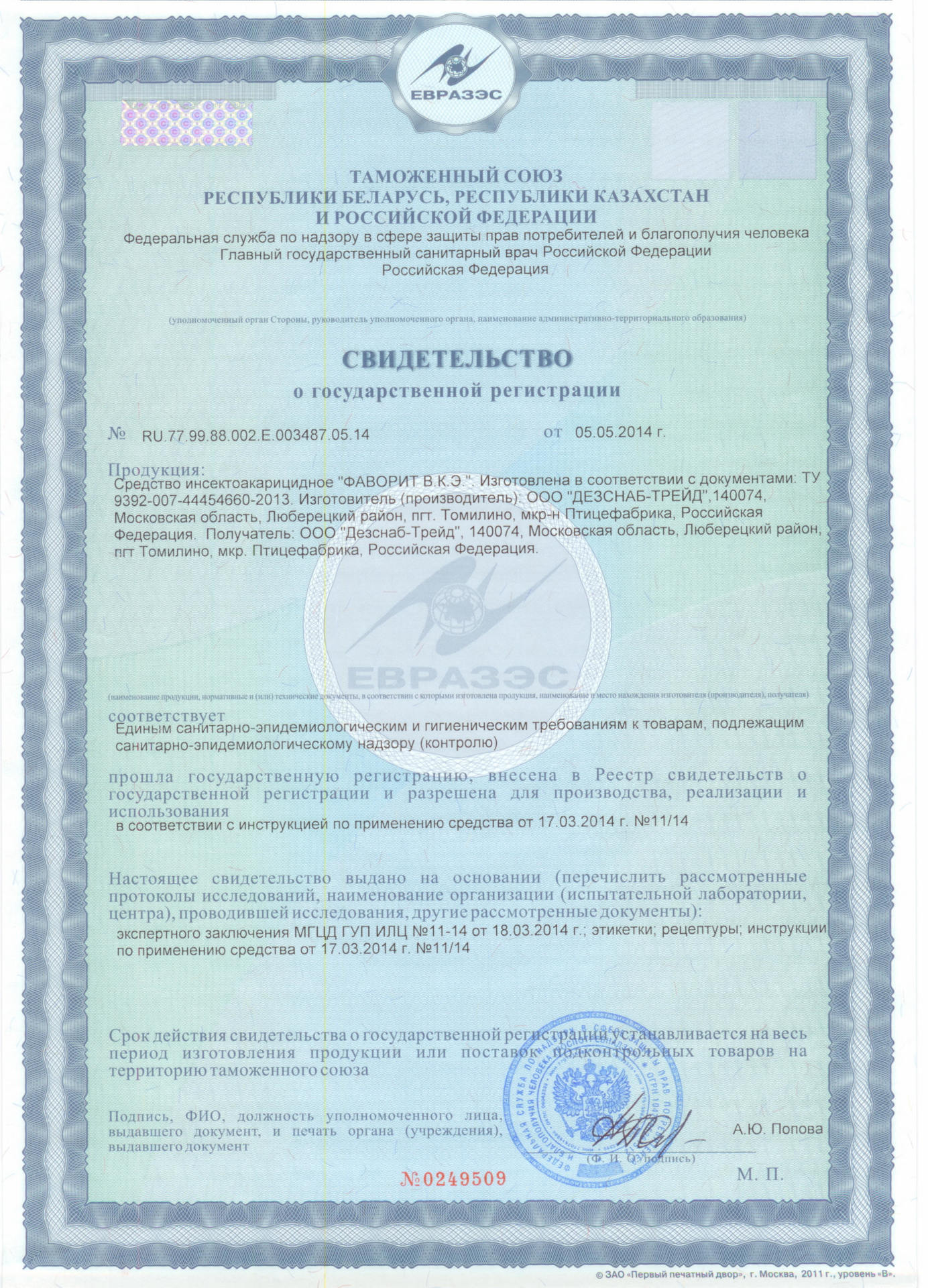 Используем сертифицированные препараты, получившие одобрение Роспотребнадзора.